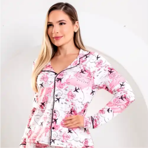 Pijama de Inverno Malha Suede com Botões de Pressão – Viagem